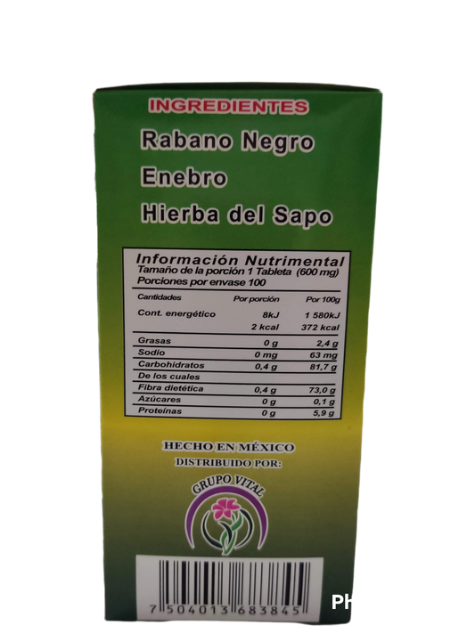 Tableta Rábano Negro/Hierba del sapo con 100